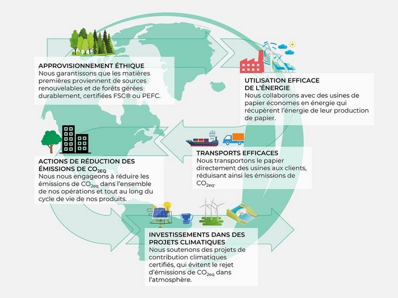 Nous connaissons tous l'impact sur l'environnement de l'industrie papetière. C'est un fait : la fabrication du papier nécessite du bois, qui est transformé en fibres par l'intermédiaire de processus gourmands en énergie, puis en papier grâce à l'utilisation de produits chimiques. C'est d'autant plus vrai si vous recherchez des papiers de haute qualité, à l'aspect professionnel, qui répondent aux normes les plus strictes sans provoquer de bourrages ni nécessiter de réimpressions. Cependant, certains papiers utilisés pour l'impression ont une empreinte environnementale plus élevée que d'autres. Lorsque vous achetez du papier, vous pouvez tirer des avantages de vos objectifs de développement durable en gardant à l'esprit les points suivants :