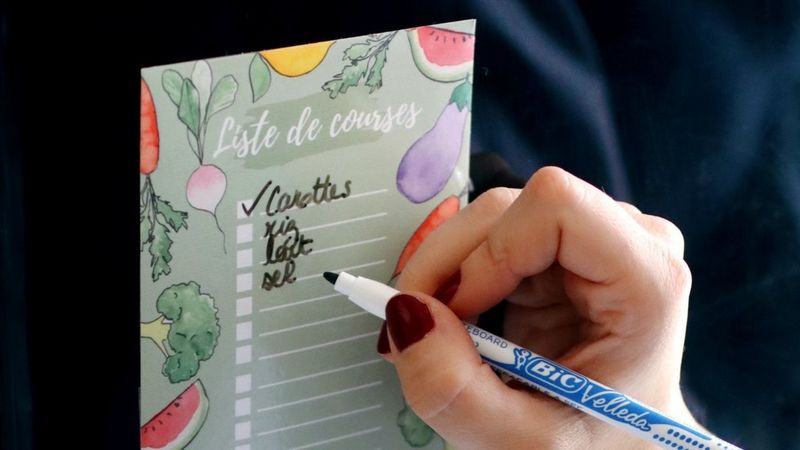 Et "Ta-DAM", c’est fini ! Il vous suffit ensuite de déposer votre liste de courses sur votre réfrigérateur et de la remplir avec un feutre effaçable.