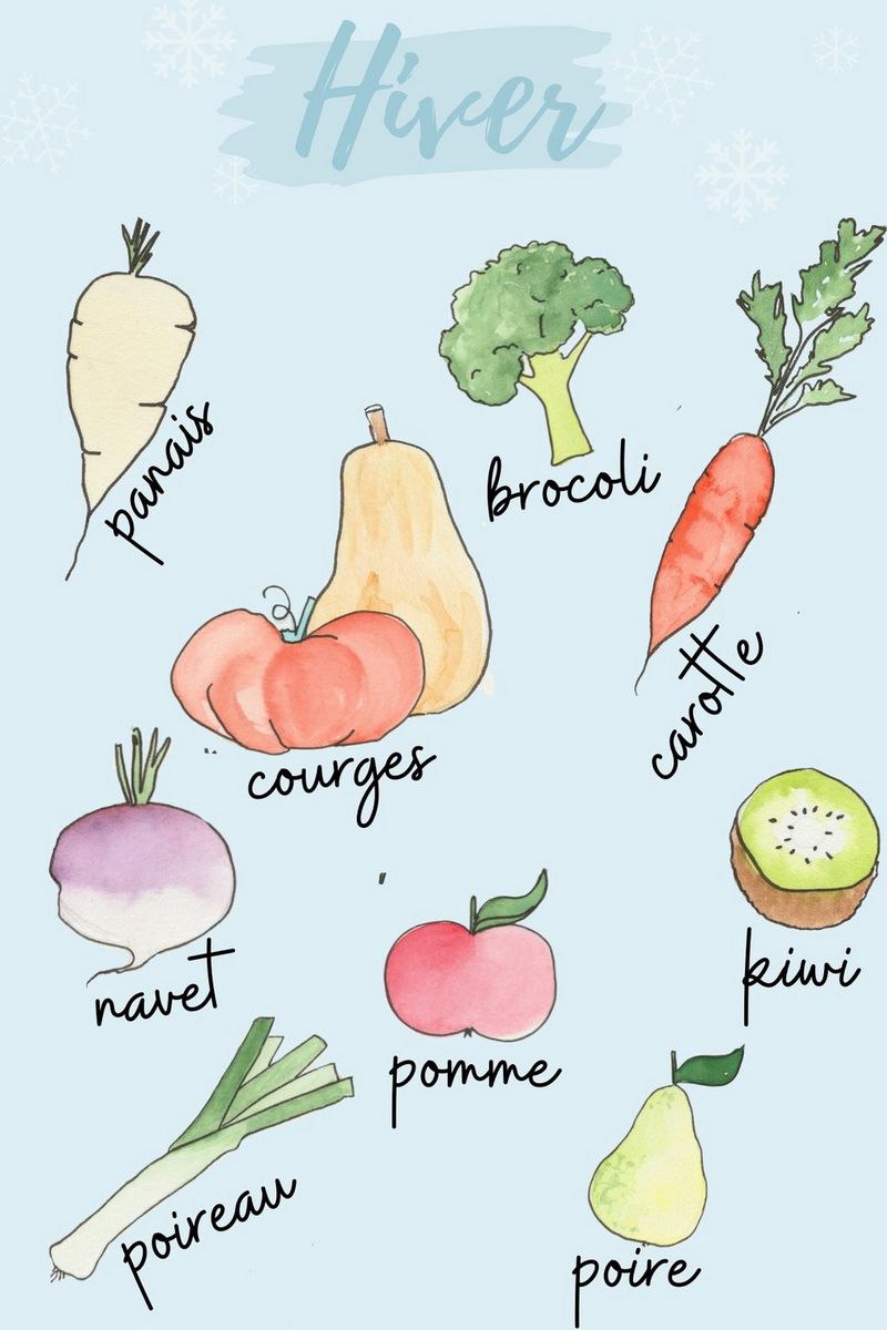 Astuce : déposez sur votre réfrigérateur, près de votre liste de courses, le calendrier de fruits et légumes correspondant à la saison en cours (exemple : Hiver) pour ne plus oublier vos 5 fruits et légumes par jour...