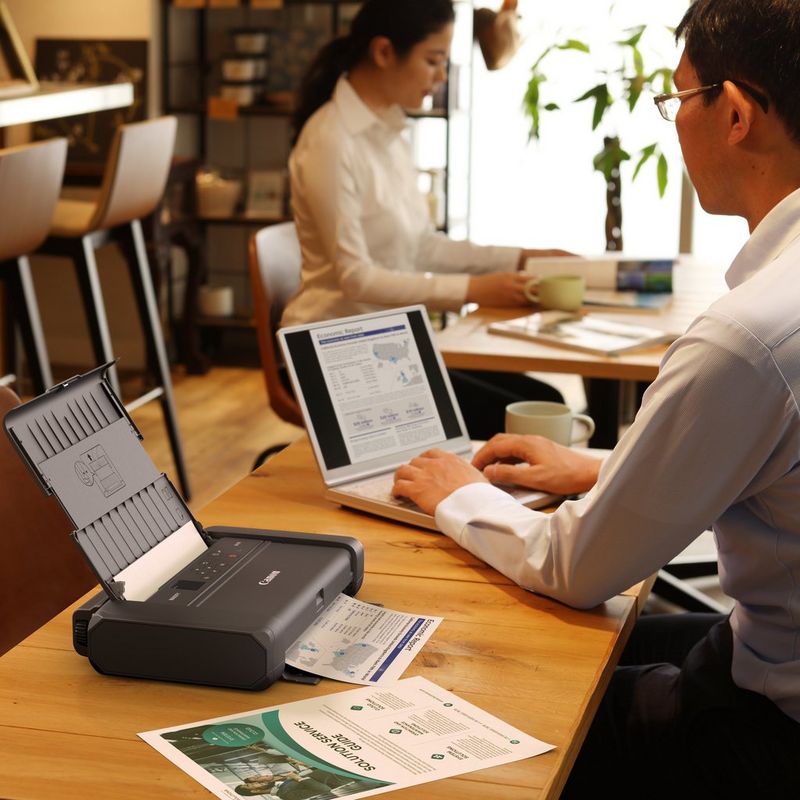 Imprimez où et quand vous voulez avec l'imprimante portable Canon MAXIFY BX110 A4 avec batterie. Grâce à sa batterie rechargeable, cette imprimante compacte et robuste vous permet d'imprimer jusqu'à 330 pages en une seule charge³. Imprimez en toute simplicité depuis des véhicules, des postes de travail et des lieux d'activité distants grâce au câble USB type C pour le chargement. Une imprimante mobile fantastique ; vous pouvez imprimer sans fil avec les applications Canon PRINT, AirPrint (iOS) et Mopria⁵, ou vous connecter via Wireless Direct si vous n'avez pas accès au Wi-Fi. Idéale pour les secteurs de l'ingénierie, de la logistique et de l'administration, cette imprimante garantit des tirages nets et des couleurs éclatantes, pour l'impression de documents texte A4 et de photos sans bordures. L'imprimante est rapide : 5,5 ipm en couleur et 9 ipm en monochrome, le tout piloté depuis l'écran OLED 1,44". Bien que ces imprimantes soient utilisées pour l'impression à distance, vos informations sont protégées, grâce aux dispositifs de sécurité multi-niveaux WPA3 et TLS1.3.
