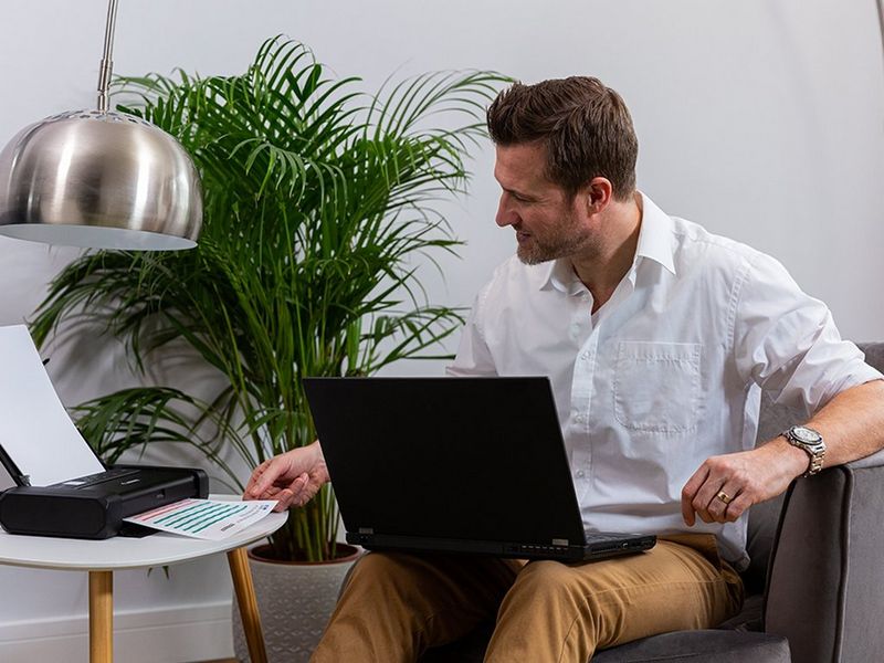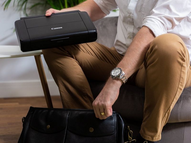 Imprimez jusqu'à 330 pages sans fil en une seule charge grâce à la batterie rechargeable³. Vous pouvez recharger la batterie via un câble USB type C.
